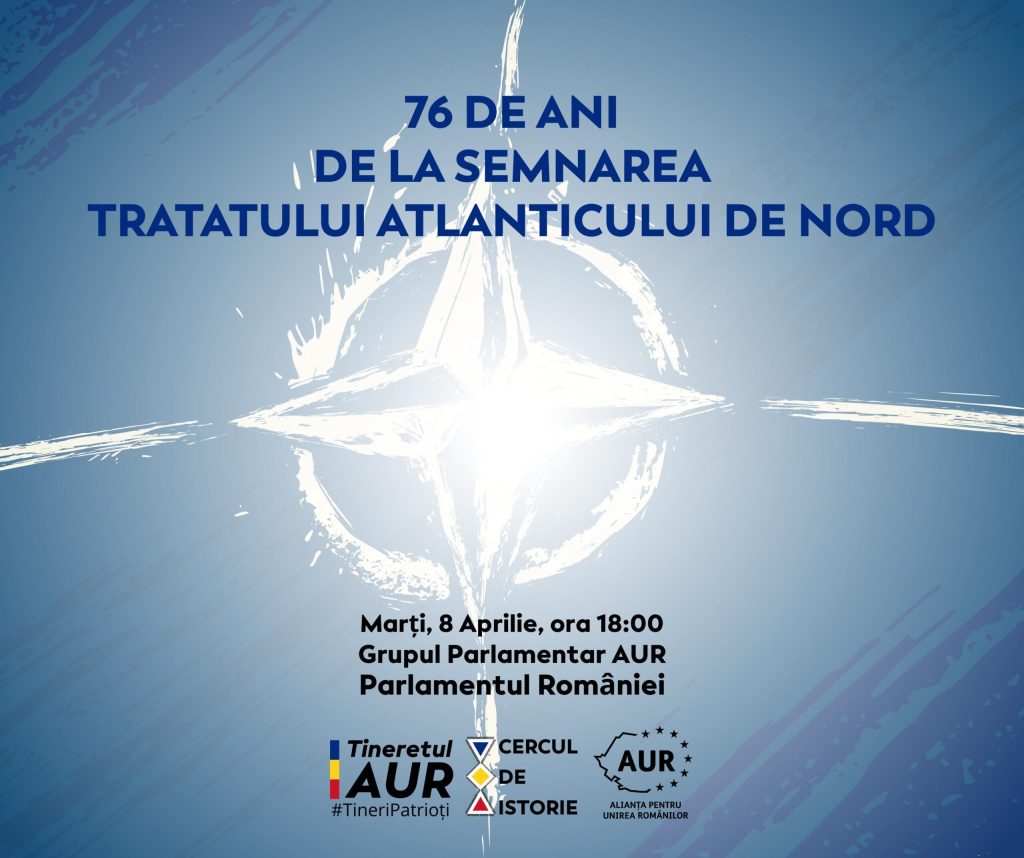 Sub egida Cercului de Istorie al Tineretului AUR, vă invităm să participați la conferința “România Puternică în NATO: Suveranitate și Securitate”, ce va avea loc marți, 8 aprilie, la Palatul Parlamentului. Evenimentul marchează împlinirea a 76 de ani de la înființarea NATO, pe 4 aprilie 1949, și își propune să evidențieze rolul esențial al României în cadrul Alianței Nord-Atlantice, abordând teme cruciale legate de suveranitatea și securitatea națională.